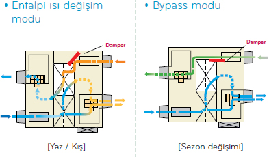 aldığı taze hava ile karıştırıp ısı geri kazanımı